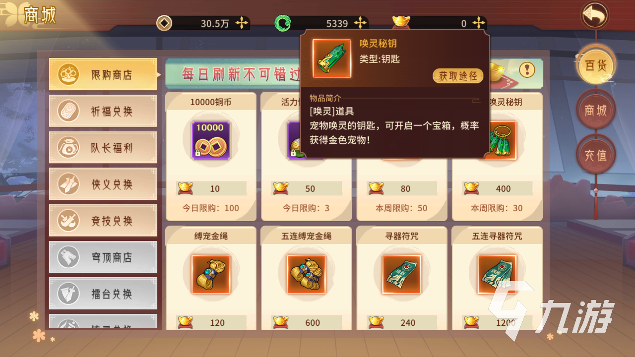 第二個推薦的是喚靈鑰匙,這個道具就是召喚寵物的主要消耗,一次會消耗一個的。道具是分為單個售賣和五個一起售賣的,大家可以根據(jù)需求來選擇。這里小編建議大家是快要出保底的時候買,正常情況下可以不買的。
