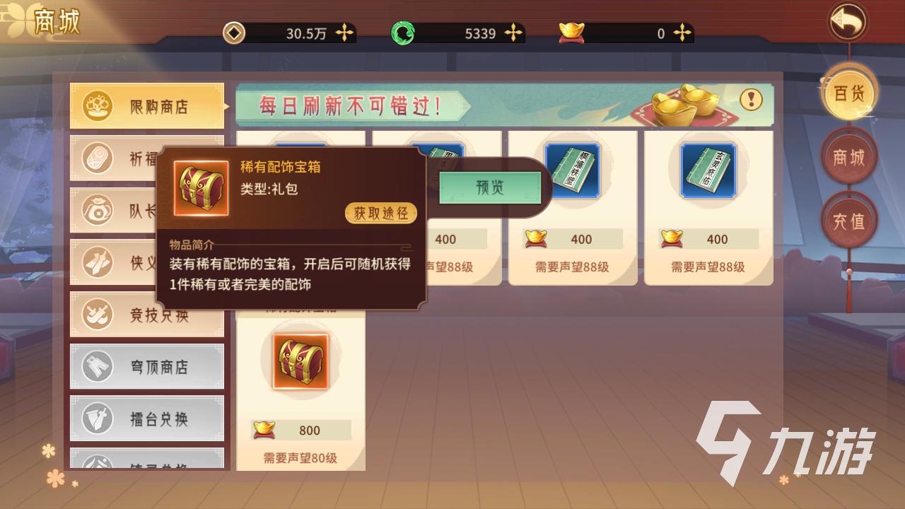 在限購商店中玩家要使用元寶才可以買到道具,而元寶除了氪金之外就只能夠通過一些活動和福利來獲得了。平民玩家的話獲取的量不是很多,所以說在花費的時候是要注意的,盡量的買一些性價比高的道具。