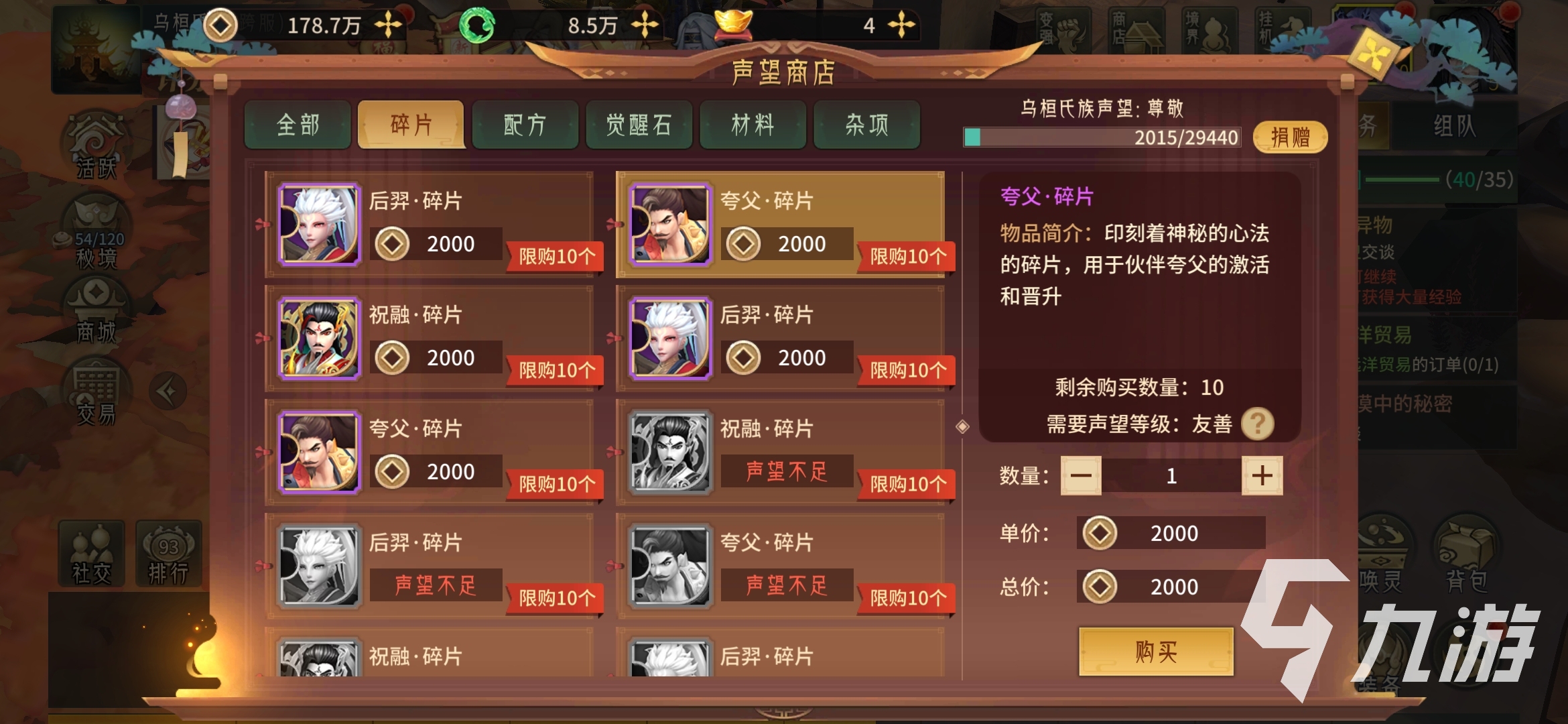 游戲中設(shè)定了非常強(qiáng)大的聲望系統(tǒng),在不同的聲望商店里可以購(gòu)買不同的伙伴碎片,并且隨著對(duì)應(yīng)的聲望等級(jí)越高,可以購(gòu)買的伙伴種類也越多。