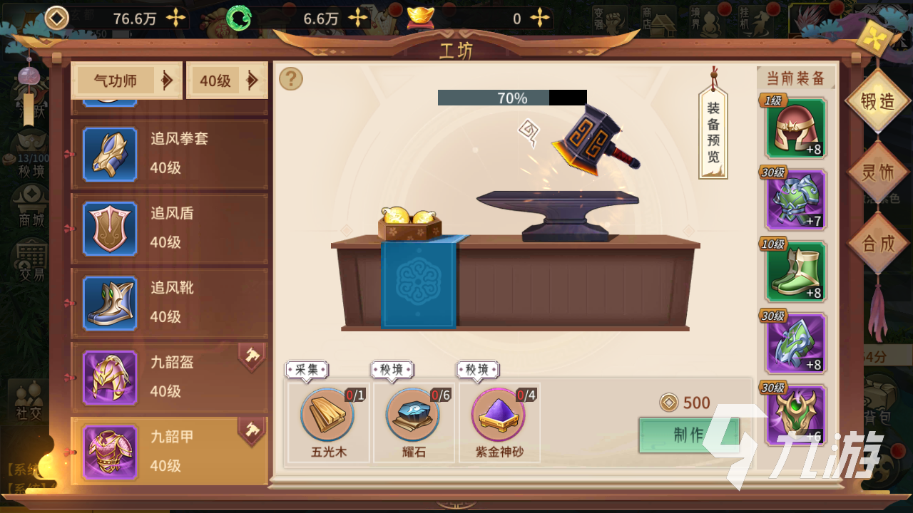 裝備鍛造玩法會在等級四十級的時候解鎖,這個等級解鎖的時候是可以鍛造出四十級裝備的。鍛造在解鎖之后,玩家點擊右下角的菜單圖標,在里面找到工坊進入之后就可以看到鍛造這個選擇了。
