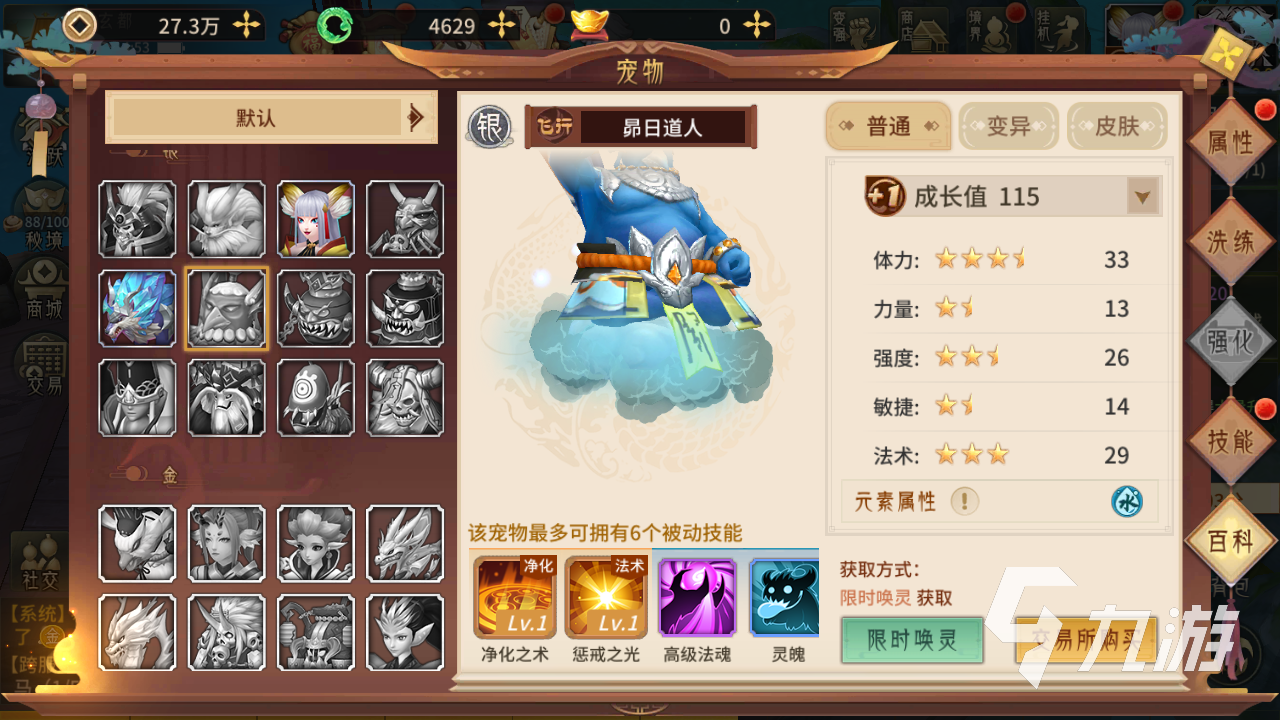 第二個(gè)就是道人這個(gè)寵物,該寵物在能力上是相對(duì)均衡的,擁有一定的法術(shù)能力,同時(shí)體力屬性也是不錯(cuò)的,可以當(dāng)做一個(gè)偽前排。而技能的作用就是凈化和懲戒的,凈化之光可以驅(qū)散敵人的增益效果,懲戒之光可以讓敵人受到的傷害提升。這個(gè)寵物適合在競(jìng)技中使用,對(duì)于BUFF型的隊(duì)伍有很好的克制效果。