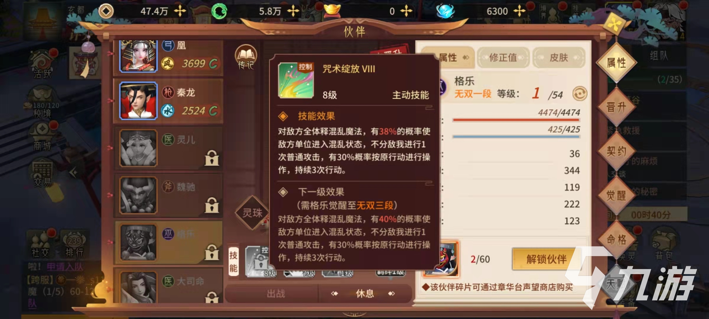 格樂是屬于控制型的伙伴,主要技能有咒術(shù)綻放,咒術(shù)沖擊,還有鎮(zhèn)靜,其中鎮(zhèn)靜可以使得格樂免受對方嘲諷的影響,可以堅定輸出目標(biāo)。咒術(shù)綻放的效果是對敵方全體釋放混亂效果,有幾率使得對方進(jìn)入混亂狀態(tài),被混亂的目標(biāo)會不受控制,有可能直接攻擊自己人,所以混亂是效果最好的控制狀態(tài)。技能咒術(shù)沖擊的效果是對一個目標(biāo)進(jìn)行多次打擊,并且自身恢復(fù)血量,格樂也算是自帶恢復(fù)效果的伙伴,所以生存能力還是非常強(qiáng)悍的。