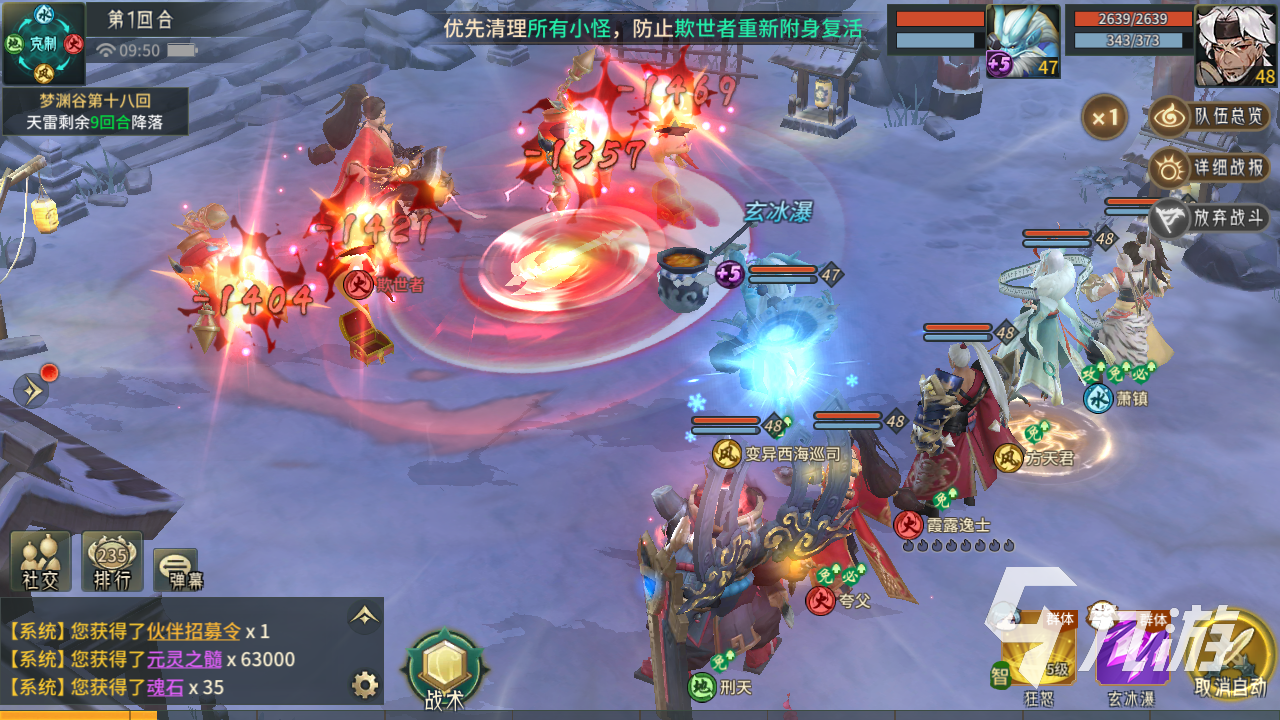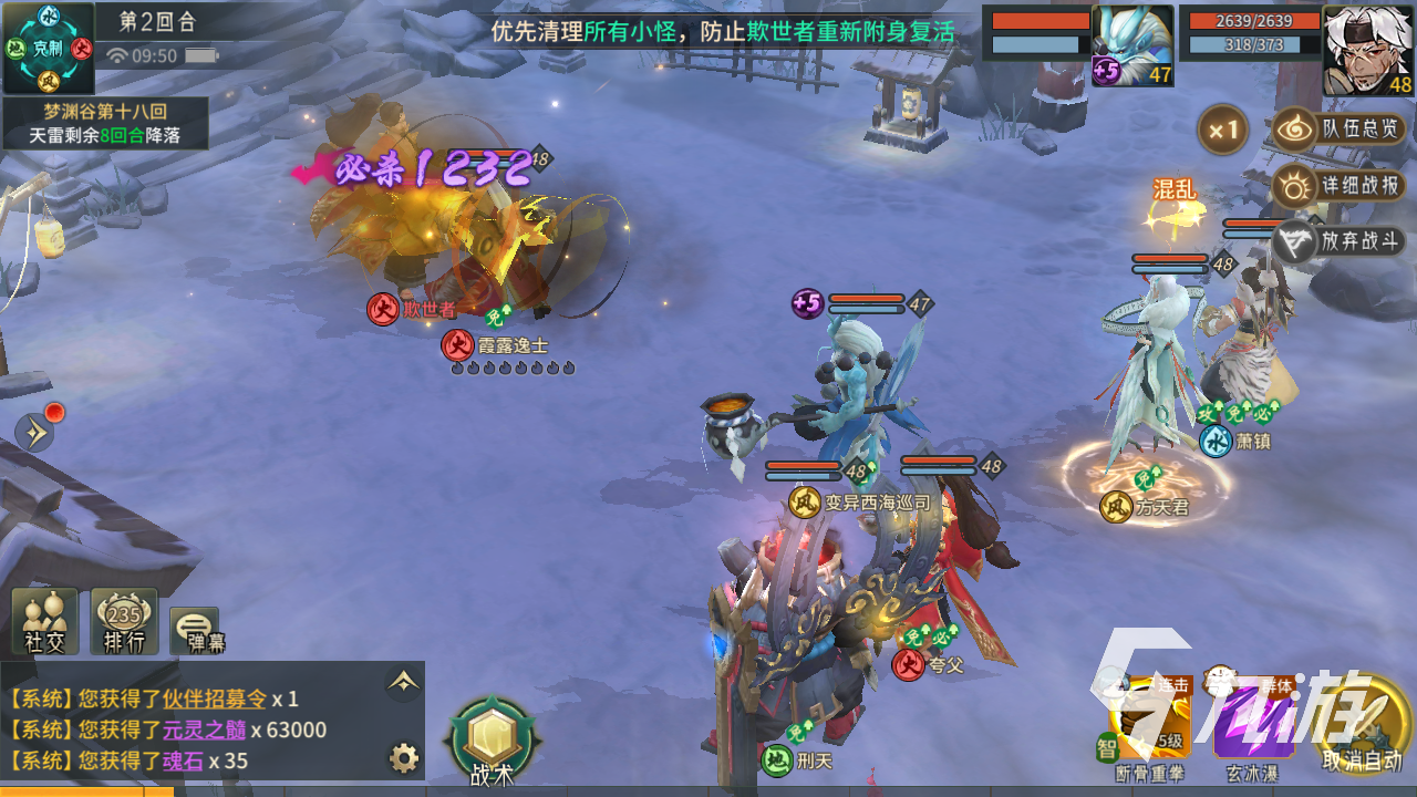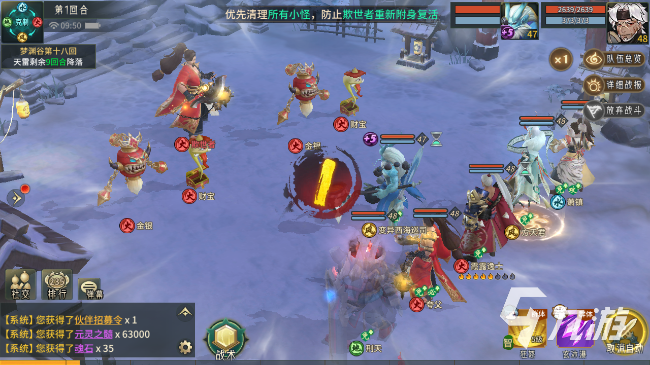 那么在進(jìn)入到戰(zhàn)斗之后,可以看到對方除了欺世者之外還有金銀財(cái)寶這些小怪的。這些小怪在攻擊能力上不是很高,但是在防御能力上是很不錯(cuò)的。同時(shí)這些小怪和欺世者是有互動(dòng)的,也就是復(fù)活這個(gè)機(jī)制。
