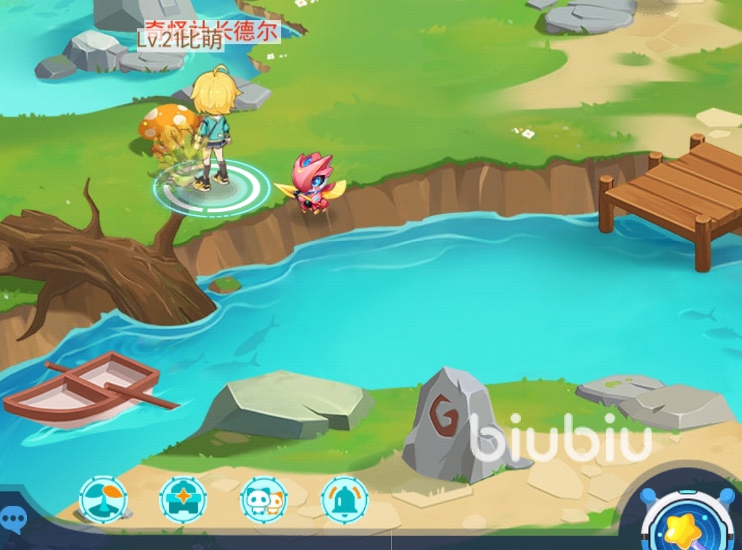 然后,玩家朝著地圖的左下角出發(fā),需要擊敗平原守衛(wèi),趕到遺跡平原處。在這一處平原河流的下方,玩家雙擊之后,選中石塊,登上小船之后,再選取對(duì)岸岸邊完成下船,還通過飛躍的方式,完成下船。