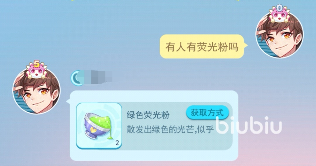 方法二、公頻中求助獲得,玩家門可以到公屏中問一問“有沒有朋友擁有熒光粉”,這樣會(huì)有小伙伴將自己的熒光粉分享在公屏中,玩家只要點(diǎn)擊熒光粉的獲取方法,就能夠前往沼澤之地了,因?yàn)闊晒夥凼钦訚芍氐奶赜械谰?,所以它的獲取方式就是在沼澤之地,刷探員兔獲得。