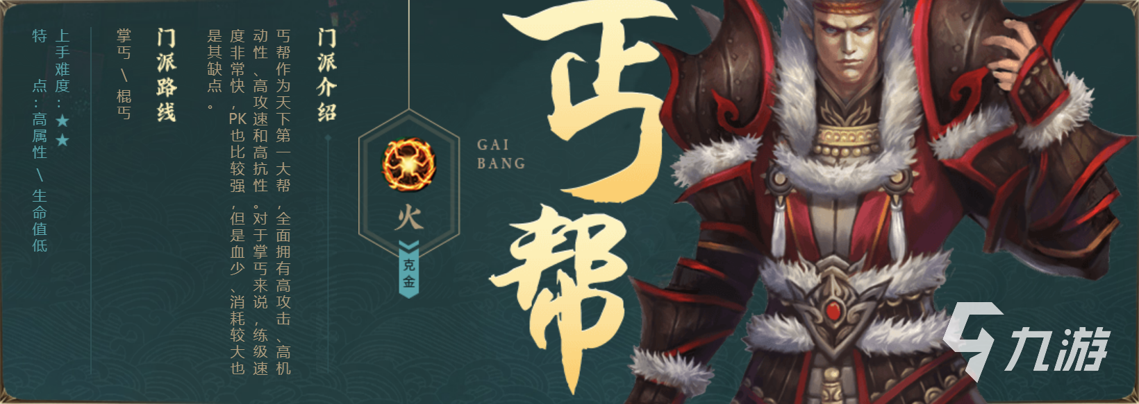 丐幫是一個比較全面的門派,同時擁有高攻擊、高機(jī)動性、高攻速、高抗性,并且可以給敵人附加灼燒與受傷效果,唯一的問題其以生命之不高。有掌丐與棍丐兩大分支,分別代表了丐幫最具特色的兩大招式:降龍十八掌與打狗棒法。小伙伴們在玩丐幫的時候打pvp一定要學(xué)會拉扯,雖然丐幫的傷害很高,但是持久力低,很容易就會被換血耗死。