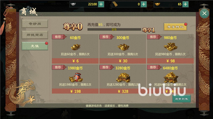 劍網(wǎng)1歸來(lái)游戲并非是點(diǎn)卡的模式,玩家可以直接在商城充值金幣。金幣是游戲中的主要貨幣,除了部分任務(wù)活動(dòng)會(huì)贈(zèng)送金幣之外,主要的獲得方式就是充值,玩家可以使用金幣購(gòu)買(mǎi)各種珍貴的物品。