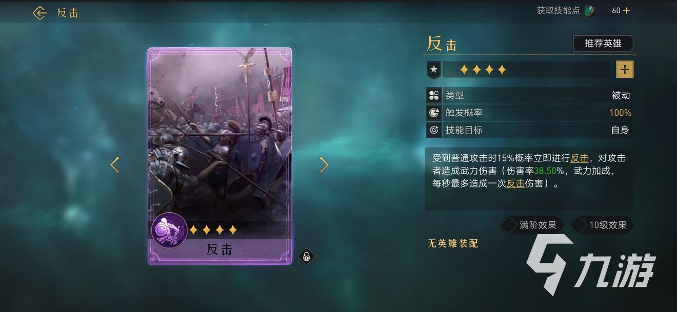 還需要提醒一點(diǎn)的是,此時(shí)的項(xiàng)小哥以及弗小哥,他們倆的天賦是最好要到三級(jí),沒有厚實(shí)的身板自然也不能更好地承傷,這個(gè)道理想必各位都是懂的。至于之后的技能搭配,小伙伴們也可以參考如下的方案,主要側(cè)重點(diǎn)就是反擊以及防御的提升,如果沒有相應(yīng)技能的話,也可以選擇其他的紫技來先替上。