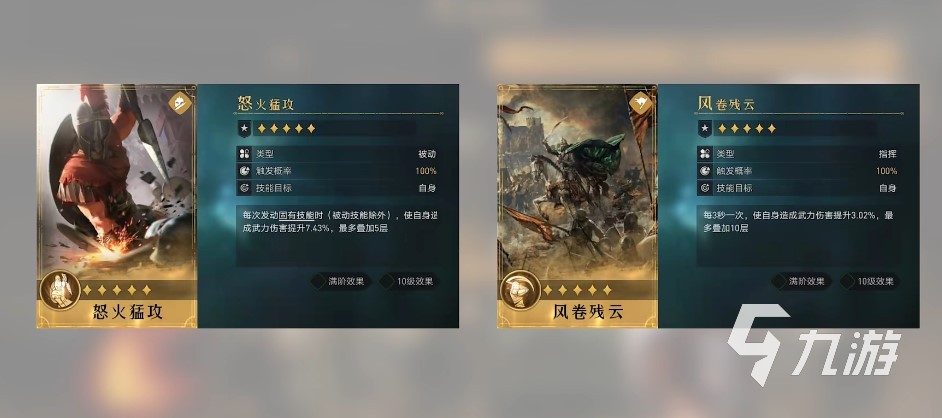 該隊(duì)伍中,指揮劍中的武將是相對最容易獲得的,瓊恩、尤里烏斯有送,而影舞者基礎(chǔ)池子里有送,也好出。但該隊(duì)伍比較吃技能,而指揮劍所需要的2個(gè)關(guān)鍵性技能都是在活動(dòng)卡池里。如果沒有怒火猛攻(每次發(fā)動(dòng)固有技自身造成武力傷害提升)和風(fēng)卷殘?jiān)疲?秒提升武力傷害)這兩個(gè)技能,那么指揮劍的強(qiáng)度就會(huì)低不少。