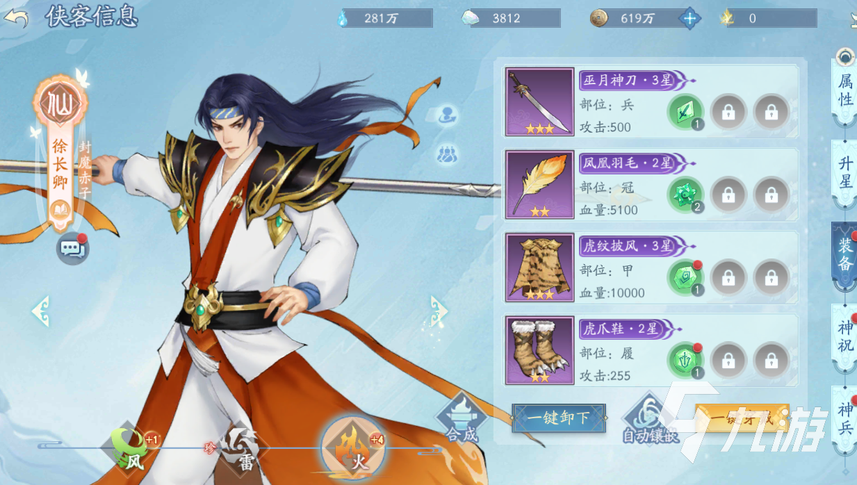 第二個位置的解鎖就不是要賬號等級了,而是需要裝備的品級達到橙色才行。裝備的品級設定也是有很多的,在紫色以上就是橙色了。而橙色一星就會開啟這個位置,所以說玩家多多收集一些紫色裝備,之后進行合成操作就可以解鎖了。如果合成材料不夠的話,也可以在一些玩法中來獲得橙色裝備。比如說尋仙路或者說心魔等,都是有幾率遇到的。