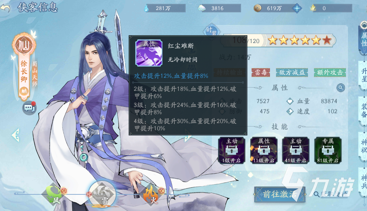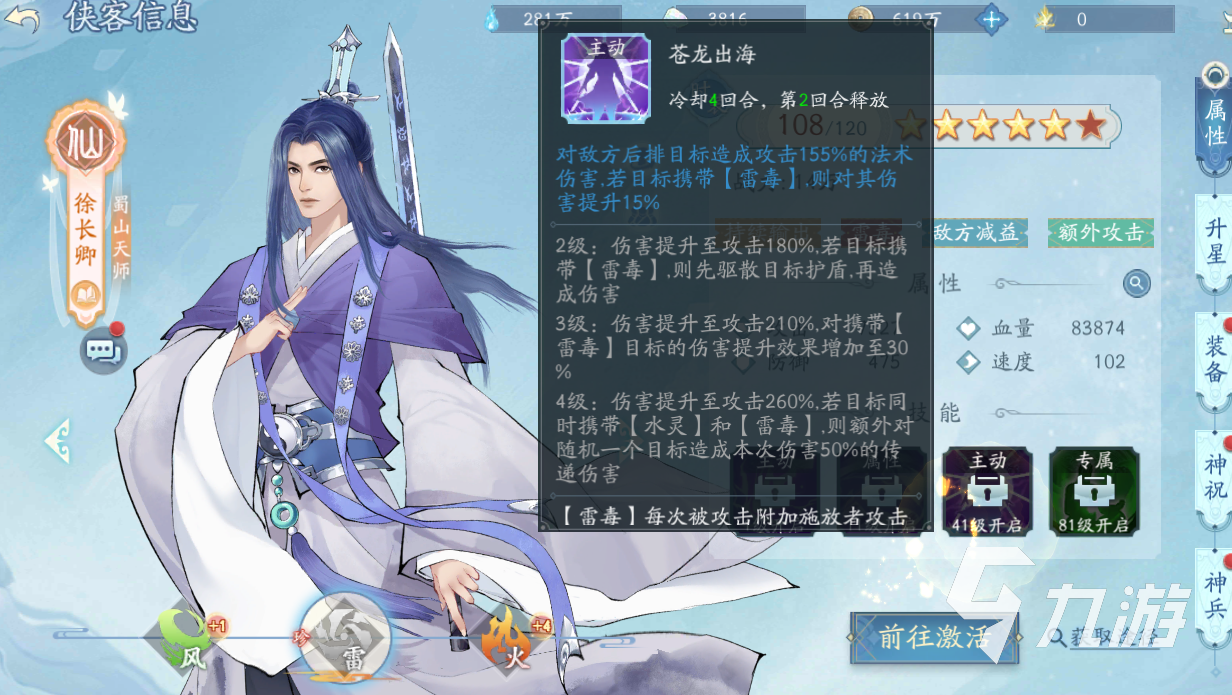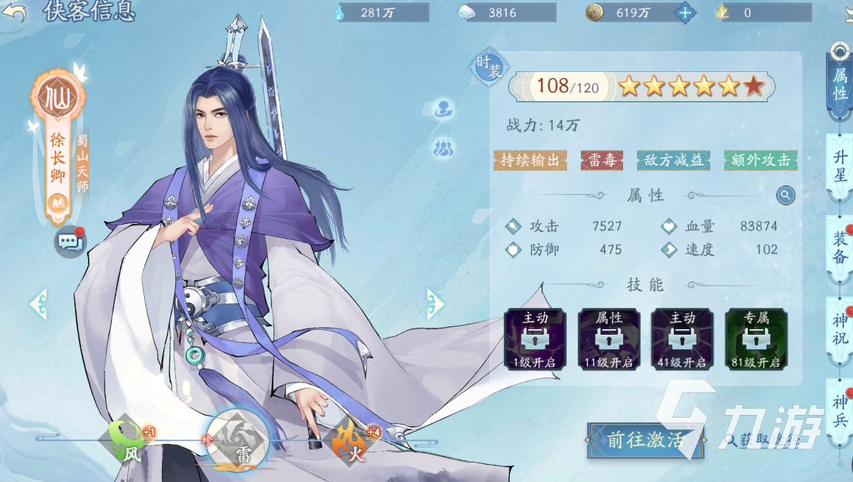 蜀山徐長卿是一個(gè)雷屬性的設(shè)定,這個(gè)屬性的話定位是一個(gè)持續(xù)的輸出,同時(shí)還帶有雷毒以及削弱敵人的效果。這個(gè)定位的能力看起來還是不錯(cuò)的, 不是一個(gè)千篇一律的爆發(fā)輸出設(shè)定。