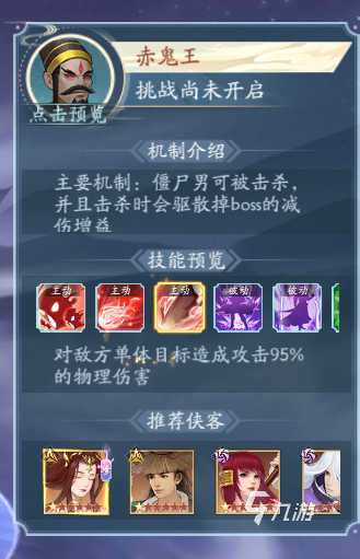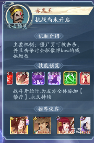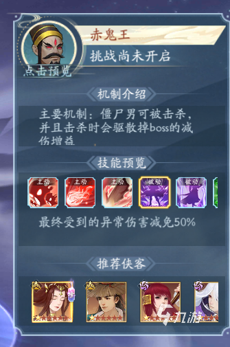 赤鬼王這個敵人是沒有屬性設(shè)定的,所以說想要使用屬性克制來戰(zhàn)斗的話是不行的。這里建議大家選擇趙靈兒、霍元戈和龍葵這幾個俠客來當(dāng)做主力,在練度上盡量的高一些,戰(zhàn)斗起來難度會小一點。