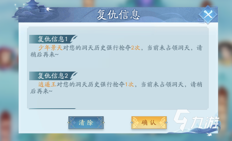 在洞天被敵人搶奪之后,玩家在郵件中會收到提示,之后進入到洞天界面來查看即可。如果說被搶奪的時間不是很長的話,點擊洞天左下角的復(fù)仇按鈕,在這里面就可以看到敵人的信息。點擊對方的名字之后可以來到被占領(lǐng)洞天這里,之后點擊占領(lǐng)就可以開始戰(zhàn)斗了。