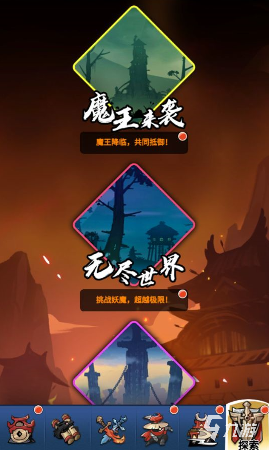 該玩法的入口位置很好找,在主菜單下找到探索的圖標(biāo),點(diǎn)擊后在列表中選魔王來(lái)襲,即可開啟挑戰(zhàn)。