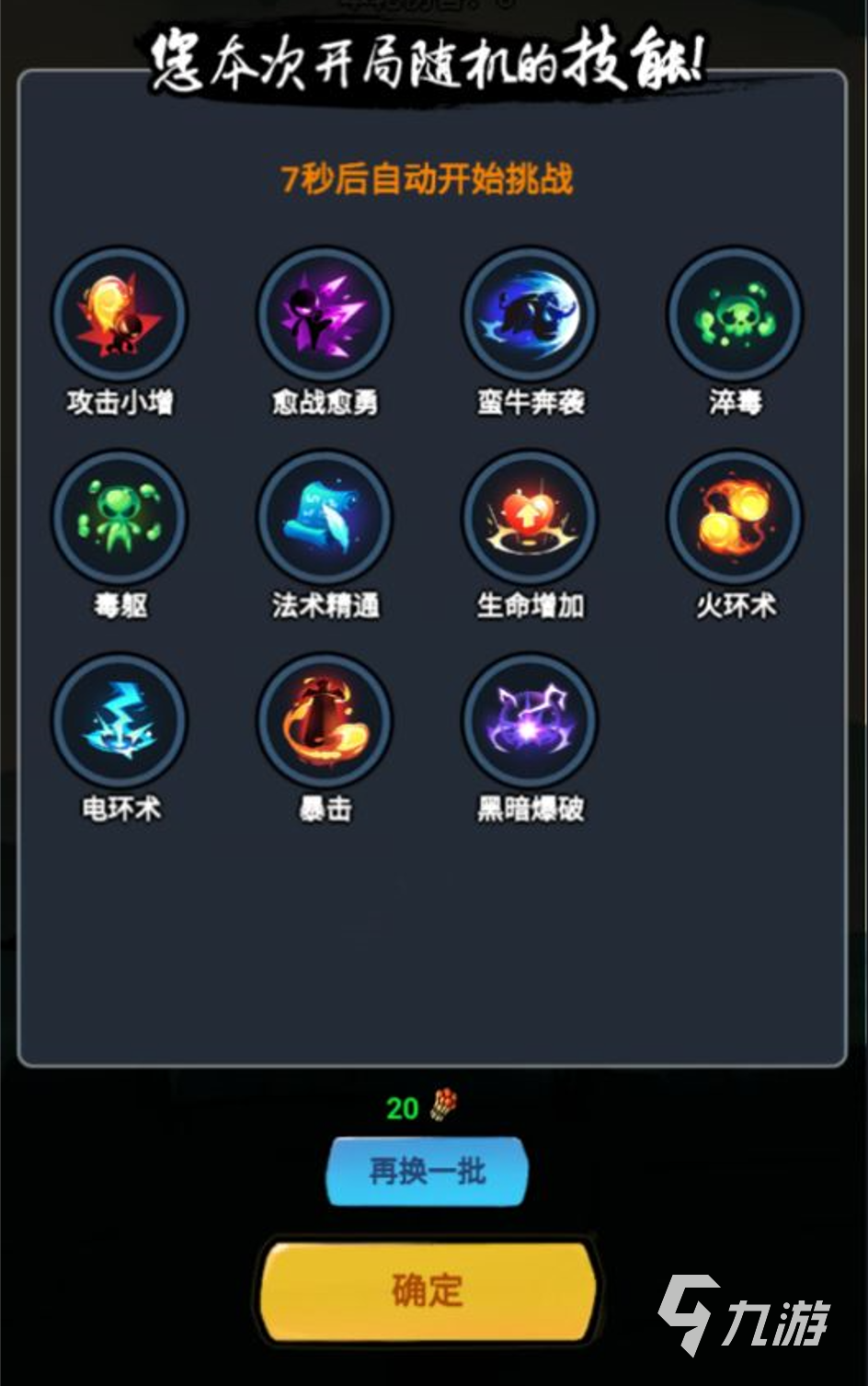 3、在進(jìn)入該關(guān)卡之前,系統(tǒng)會(huì)提供一批隨機(jī)的技能給玩家選擇。如果沒(méi)有合適的技能,我們可以通過(guò)消耗火柴的代價(jià)來(lái)更換。