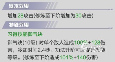 功法書又分為秘卷、法決、絕學和心經(jīng),基本效果是可以增加角色的基礎屬性,比如生命值、防御力、攻擊力這些屬性。除了這些基礎屬性加成外不同類別的功法書還有各自的特殊加成。
