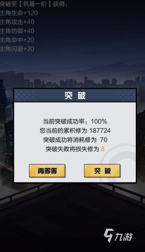 在解鎖前置的條件之后,玩家點(diǎn)擊脫坡進(jìn)入到對應(yīng)的界面。在這里點(diǎn)擊突破按鈕會彈出一個確認(rèn)的菜單,這里會顯示本次突破需要消耗的修為,同時以及突破的成功率等等。這些都是玩家要注意的,隨著境界的提升,消耗方面也是會提升的。