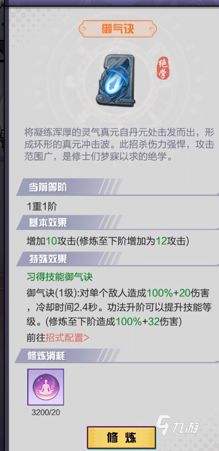 功法的能力在游戲中還是有很大區(qū)分的,而御氣訣是屬于絕學的一種,絕學的話在戰(zhàn)斗中雖然說使用的頻率不是很高的,但是在作用上卻是很強的。御氣訣在品級上是橙色級別的,這個級別的話算是高級的,獲取是有一定難度的。