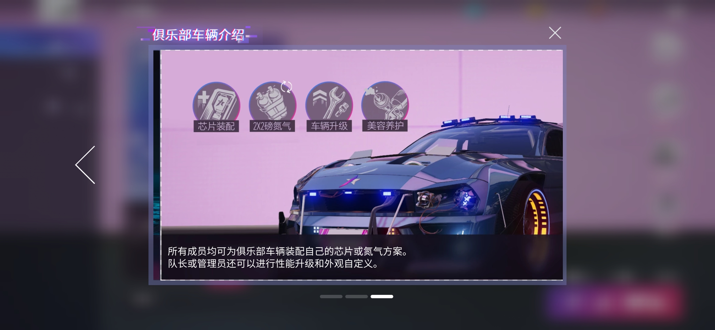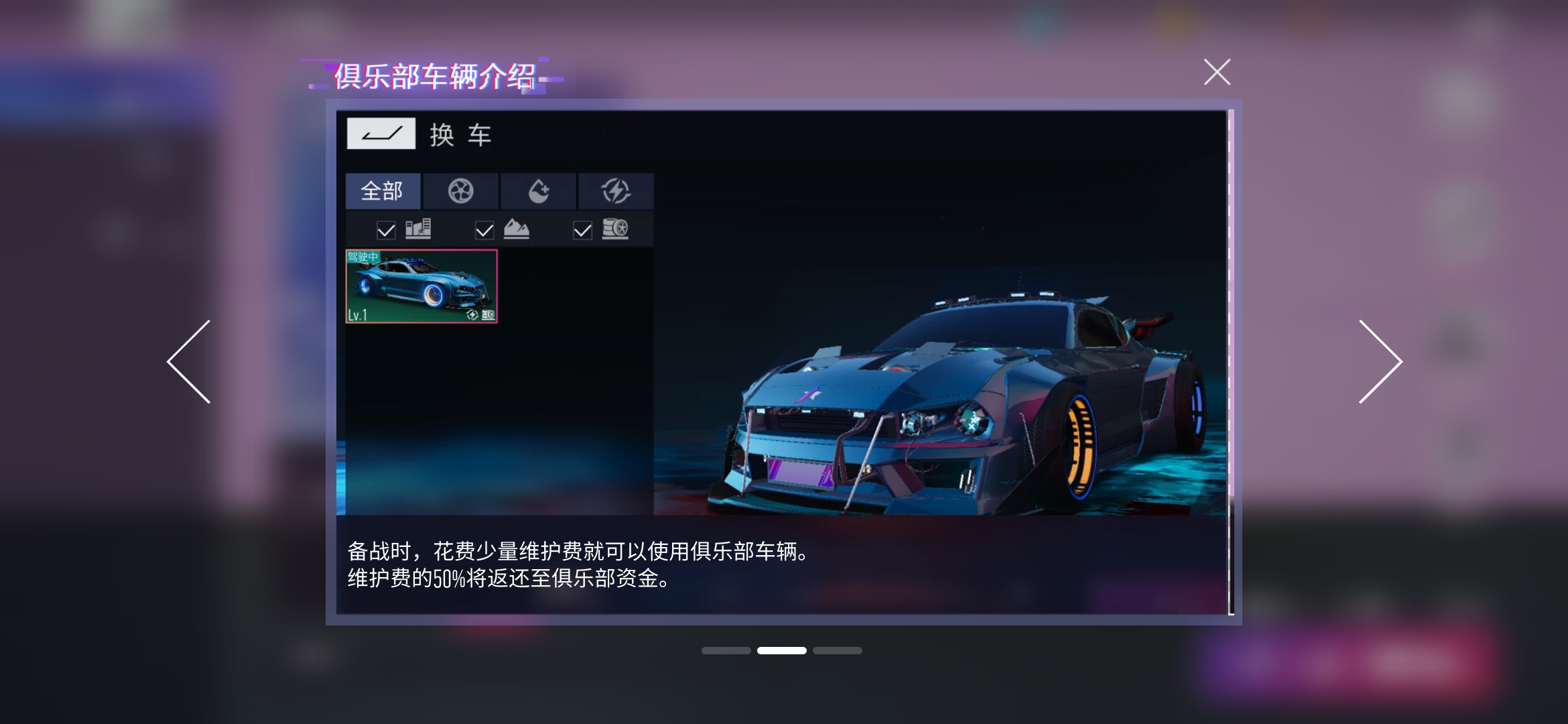 在比賽中參賽選手的車輛并不局限于自己的車庫庫存,俱樂部成員捐獻資金也可以用來購買車輛被大家所使用,只要大家使用車輛時付出大概一般的車輛花費就可以了。另外大家還可以對這些車輛的芯片和氮氣方案進行自由搭配,非常實惠。