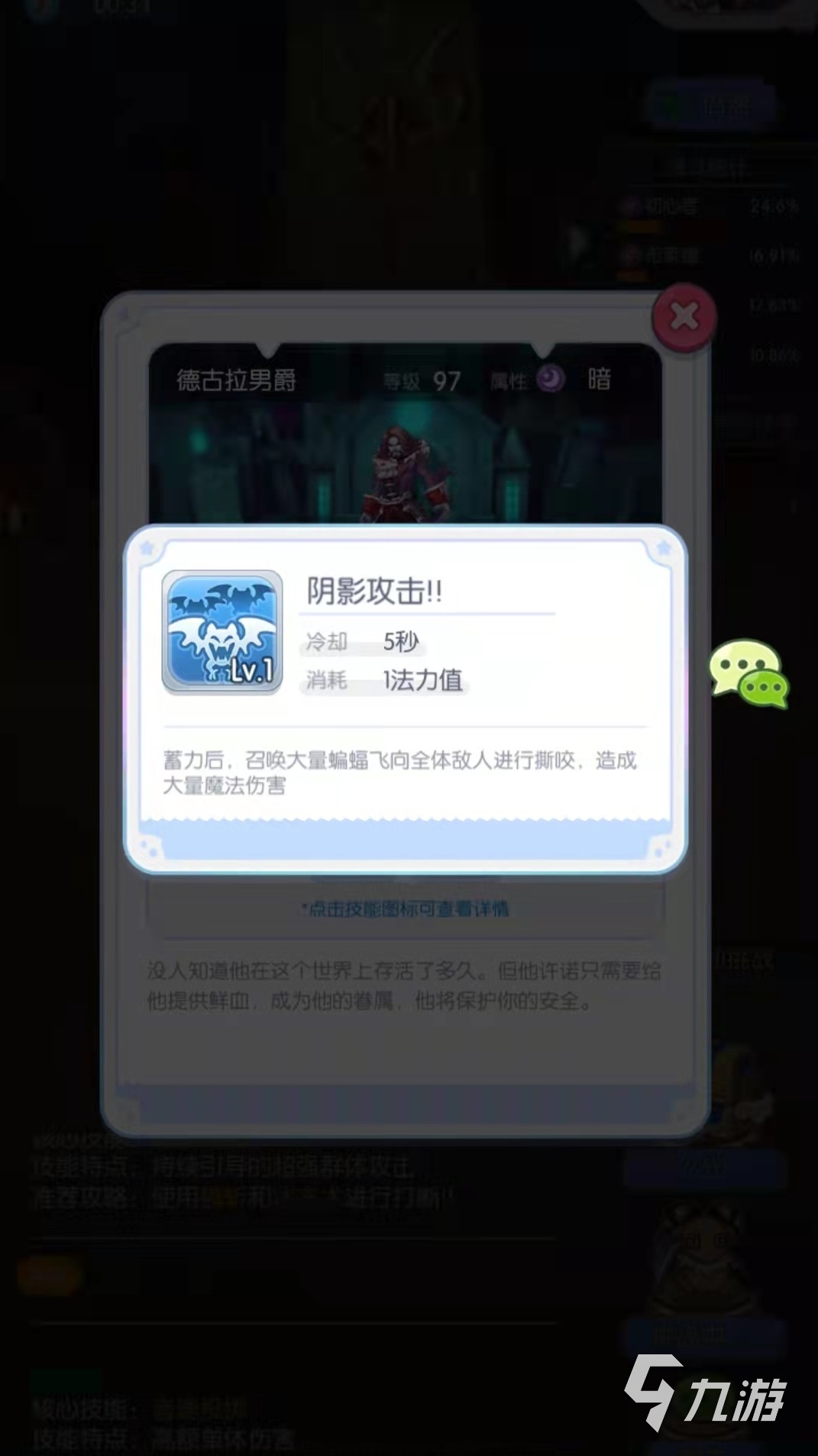 德古拉男爵的技能有兩個,第一個是死亡盛宴,第二個是陰影攻擊,死亡盛宴的效果是德古拉男爵使用鮮血包裹自己,恢復(fù)大量的生命值,結(jié)束之后再對我方全體伙伴造成一次魔法傷害。陰影攻擊的效果是經(jīng)過蓄力之后,召喚大量的蝙蝠對我方全體造成魔法傷害。