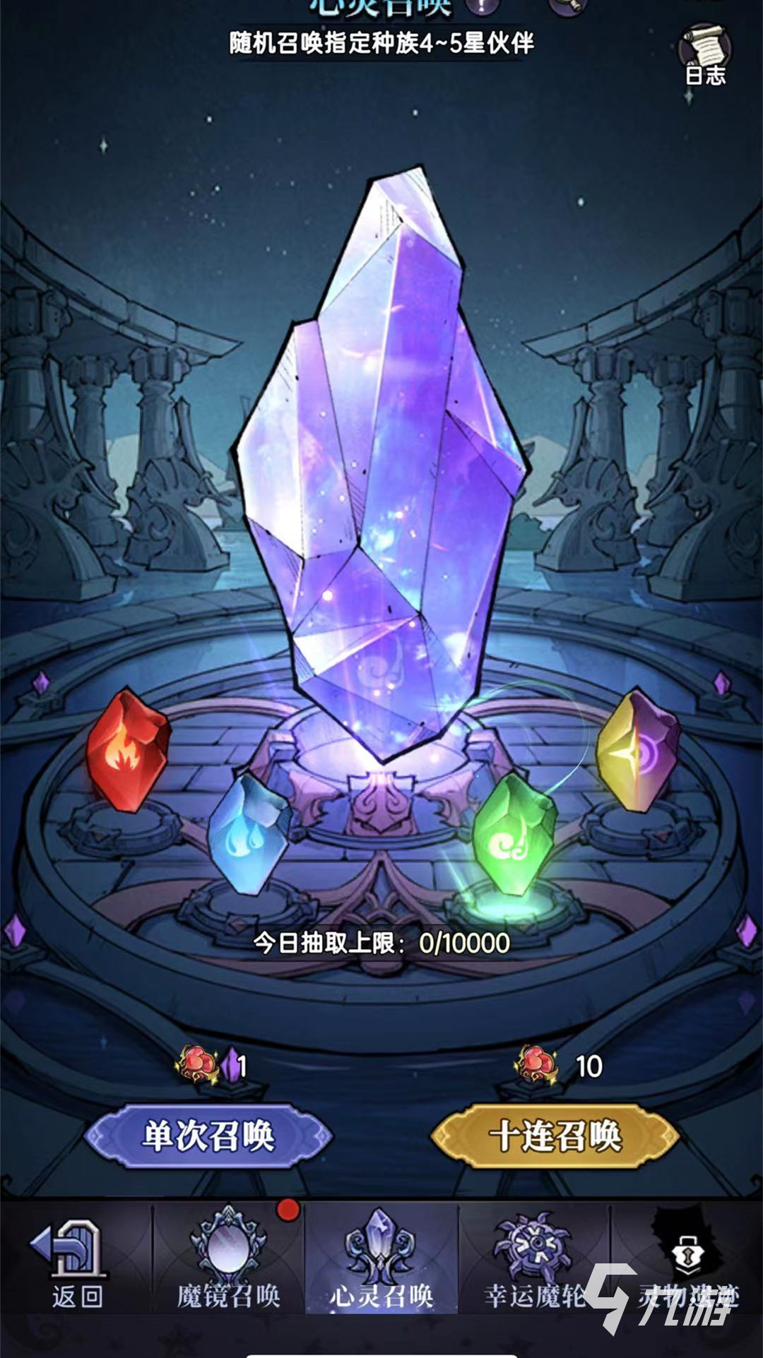 玩法很簡單,分別有兩種獲取法,一種是單次召喚,另一種是十連召喚,需要用到心靈水晶道具來進(jìn)行抽取,沒有心靈水晶的玩家需要先去獲取一下此款道具,再來進(jìn)行抽取,在心靈召喚模式中會有4種不同的寶石,玩家可選擇對應(yīng)的種族寶石進(jìn)行點亮,玩家可嘗試單抽1到4次,再點擊嘗試十連抽,小編可以保證每個小伙伴們都能隨機(jī)召喚出指定的種族4到5星的角色,小編也是研究了很久才發(fā)現(xiàn)的玩法技巧。