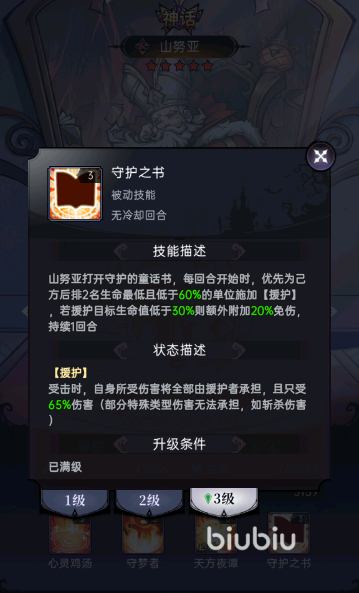 第二名守衛(wèi)角色為山努亞,該角色相比海王川頓而言更像一名純粹的守衛(wèi)。不僅可以利用技能對受傷的隊友進行生命治療,還可以直接使用守護之書技能為隊友們提供額外的免傷護盾,并且該技能無需冷卻。玩家們利用好山努亞的戰(zhàn)斗特性之后,可以直接在很多副本當(dāng)中對敵人隊伍進行碾壓。