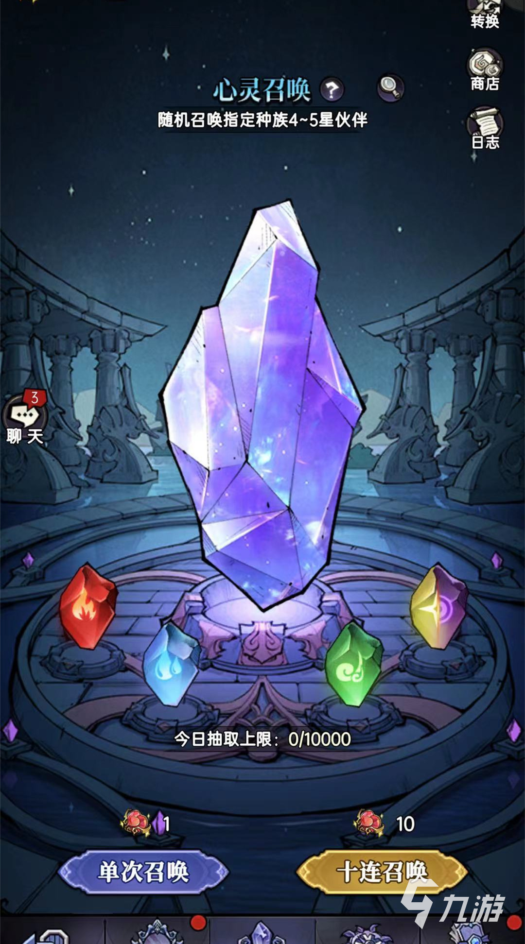 單次召喚需要消耗1個(gè)心靈寶石,十連召喚需要消耗10個(gè)心靈寶石,玩家們不要害怕抽取上限,次數(shù)非常的夠。