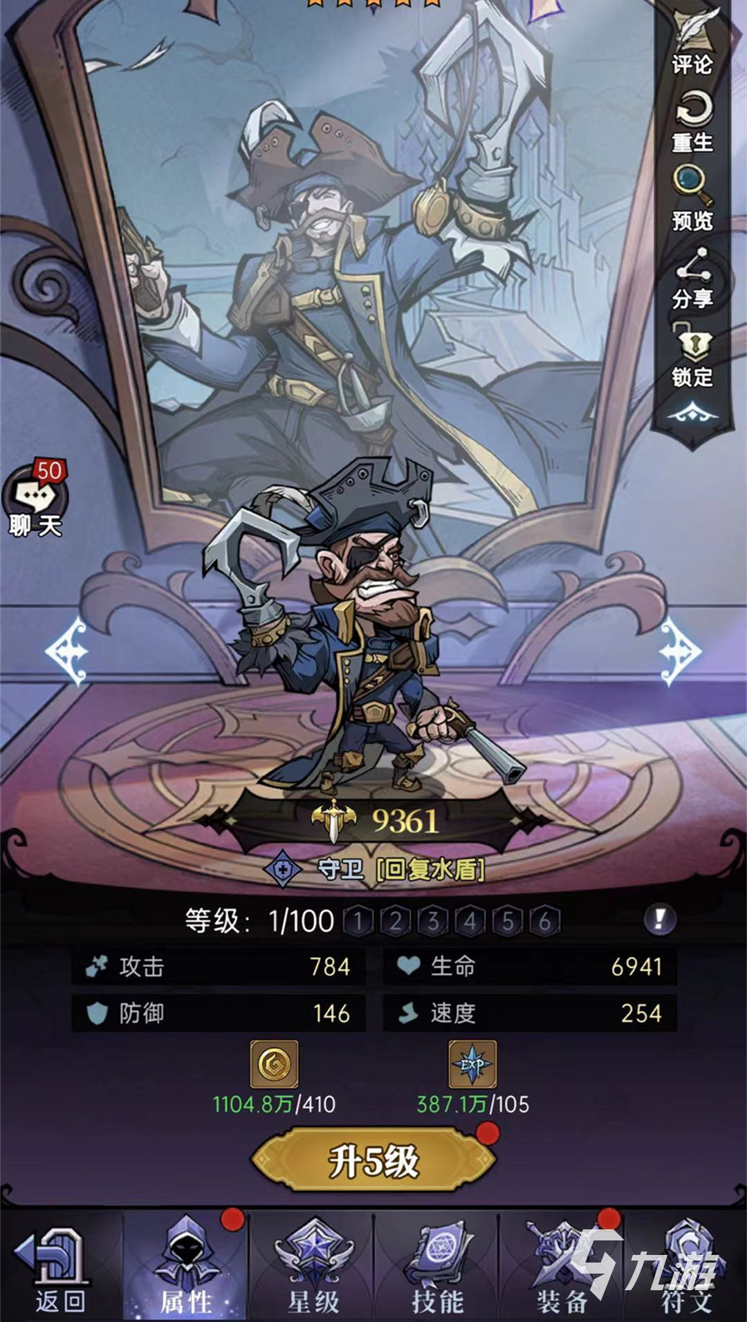 要知道胡克船長是史詩級別的人物,屬于射手位置,技能屬性也是非常不錯的,名為回復水盾,玩家們可以重點培養(yǎng)一下此角色,最高階級是6,也就是滿級100級,胡克船長起始攻擊值是8,生命值是80.防御值是1,玩家們需要進行親密升級,小編剛剛給角色升級了一小部分,胡克船長的攻擊值目前是855,生命值7529,防御值達到212,速度是306,命中率是100%。
