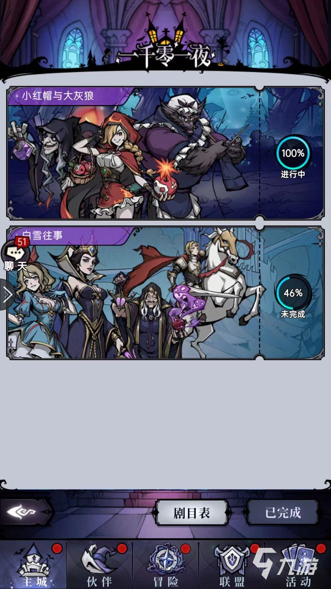 玩家進入游戲后,可以看到在主城中包括一千零一夜地點。選擇此地點進入后包括白雪往事,小紅帽與大灰狼任務。選擇小紅帽與大灰狼任務,可以看到小紅帽布蘭妮的故鄉(xiāng)被邪惡的女巫統(tǒng)治,帶來了痛苦和災難,小紅帽為此進行不斷抗爭。通過挑戰(zhàn)活動可以獲得紫金寶箱和黃金寶箱獎勵,選擇開始演出進入活動。