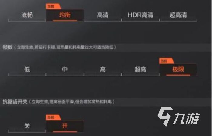 眾所周知游戲的畫面是可以分為很多幀的,而幀數(shù)越多自然呈現(xiàn)的效果越好,這里一共有五種幀數(shù),分別為低、中、高、超高、極限,其中極限最頂級,流暢度分為五種分別是流暢、均衡、高清、HDR高清、超高清,其中超高清是最頂級的。