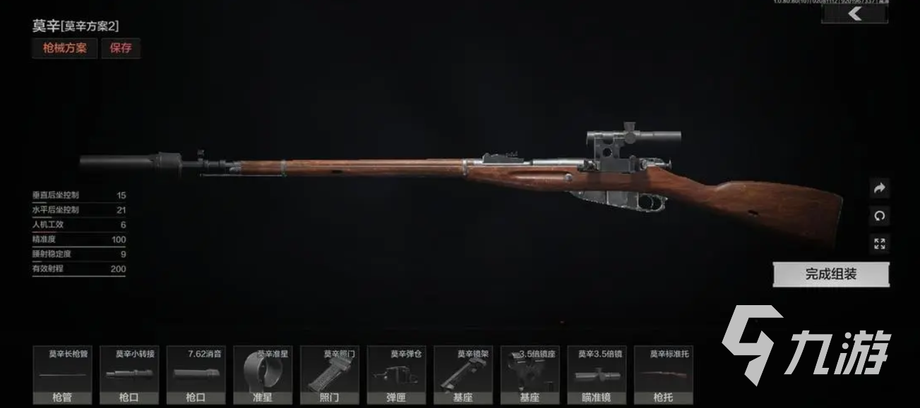 配件需求:【長槍管】+【莫辛消音器】+【莫辛前機瞄】+【莫辛彈倉】+【莫辛導(dǎo)軌】+【3x全息】+【莫辛標準托】
