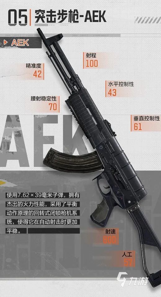 武器特點(diǎn):在各方面數(shù)據(jù)相當(dāng)不錯(cuò)的情況下,有著重量輕,高傷的優(yōu)點(diǎn)。加上7.62*39毫米的子彈出了5級(jí)的穿甲彈,完全是天造地設(shè)的一對(duì),完美配合使用。真正高傷害、高穿透、高射速、且后坐改裝后也好壓,加上重量輕人功好的高機(jī)動(dòng)性,預(yù)計(jì)可能成為下版本的神槍。很期待這把武器在大佬的手中大放異彩,到時(shí)候官方有可能進(jìn)行一波調(diào)整。