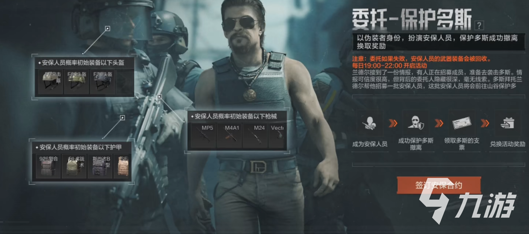 保護(hù)的一方會有著系統(tǒng)發(fā)放的4級套,大約有6個人一起保護(hù)目標(biāo)。而且多斯并不會拉閘,難度加大了很多。進(jìn)攻的一方則要自力更生,但只要把多斯干掉就可以了。成功解決了他,可以獲得一張酬單,保護(hù)了便可以獲得一張支票。只要是贏了可以換高級的物資,怎么說還是很賺的。