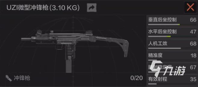 傷害最低的一把沖鋒槍,也是最入門級(jí)別的一個(gè)存在了,它的各個(gè)數(shù)值都不顯眼,射速上也是比較拉胯的,而且子彈只有十五發(fā),如果打npc小怪的話,這把槍還能用得上,但如果是和其他對(duì)手剛槍的話,就非常乏力了,因此這把槍是不怎么推薦的,其實(shí)用性可能還沒有部分手槍強(qiáng)。