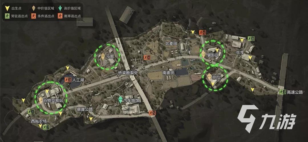 農(nóng)場這張地圖被一座斷橋劃分成了東、西兩大區(qū)域,首先來看一下它的西部物資點(diǎn),谷物交易站、以及馬廄屬于中價(jià)值區(qū)域,汽車旅館則是高價(jià)值的一個(gè)物資點(diǎn)。其中,小伙伴們在谷物交易站,比較建議去它的南樓,能找到更多的一些物資,比如食物、子彈以及電子元件等,上到二樓還能找到一個(gè)需要鑰匙的房間,其內(nèi)可以找到一個(gè)保險(xiǎn)箱。