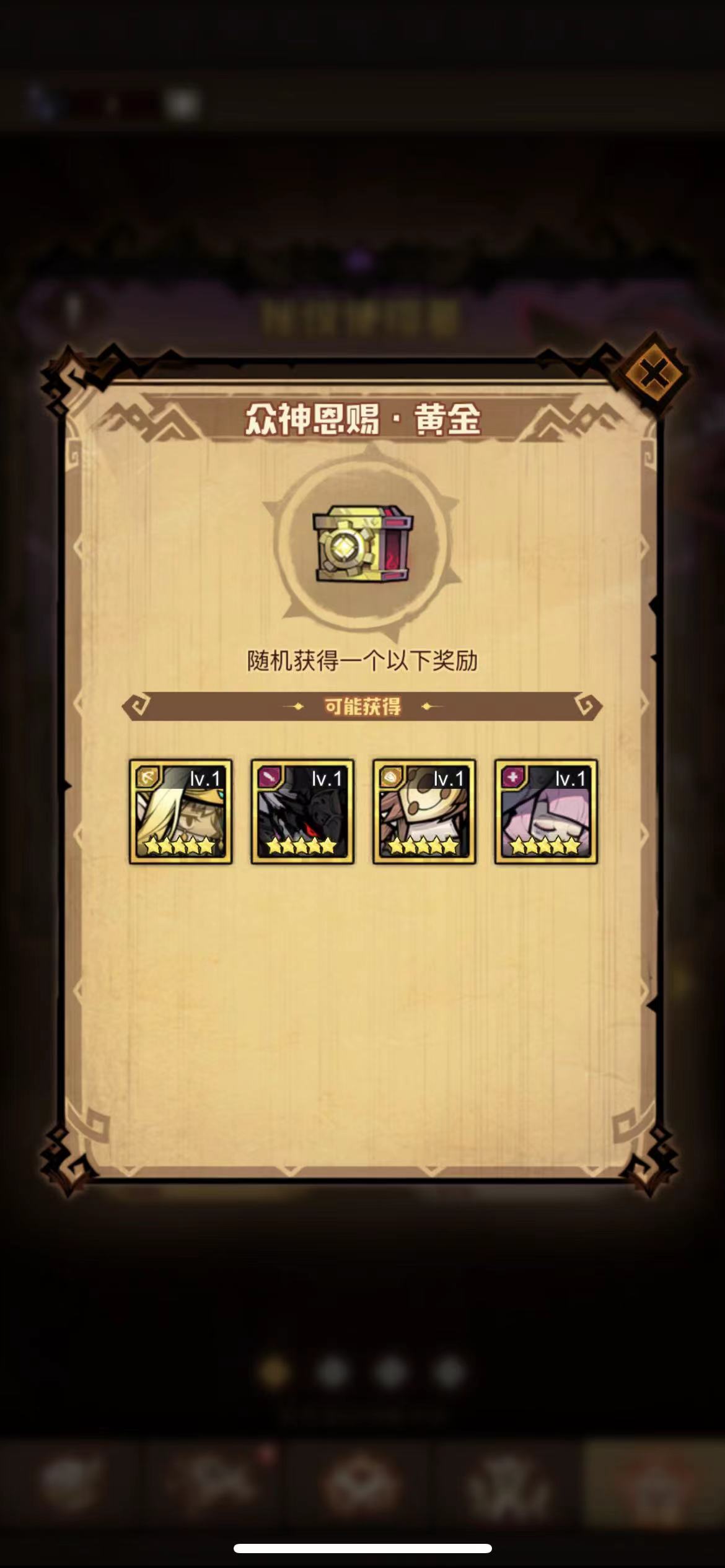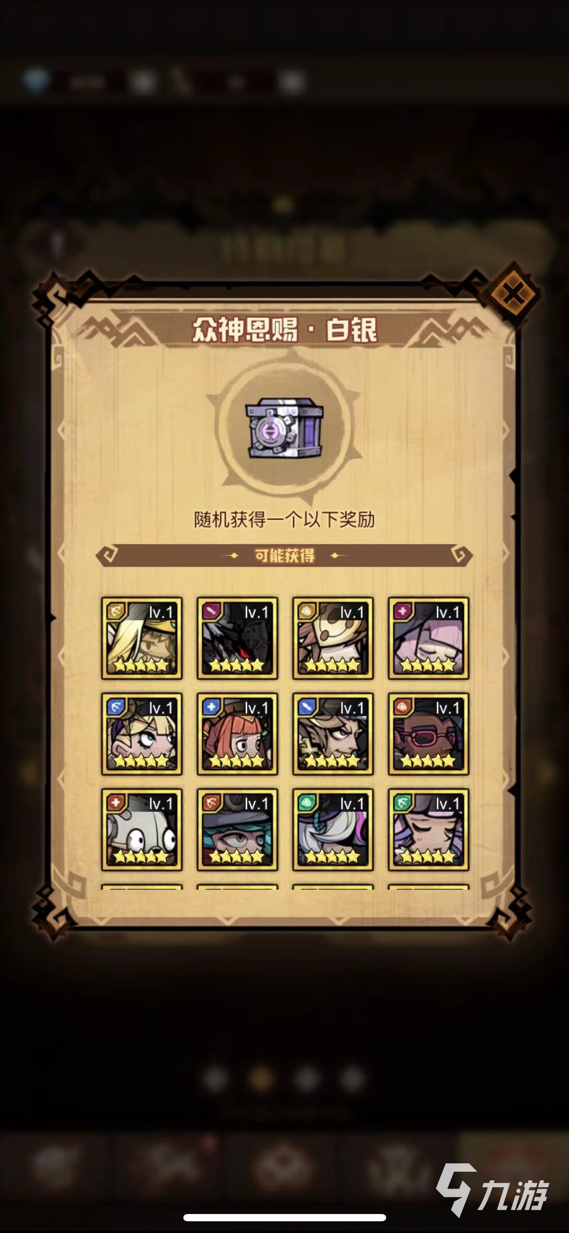 眾神恩賜寶箱里面主要是一些英雄,寶箱分為黃金以及白銀寶箱。