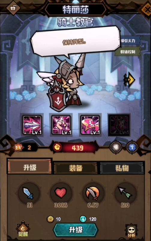 特麗莎這個(gè)英雄的出場(chǎng)是比較早的,在星級(jí)上是一個(gè)四星的英雄設(shè)定,基礎(chǔ)的屬性還是不錯(cuò)的。那么在定位上是一個(gè)騎士,騎士的話在戰(zhàn)斗中的作用是比較重要的,下面來看看能力。