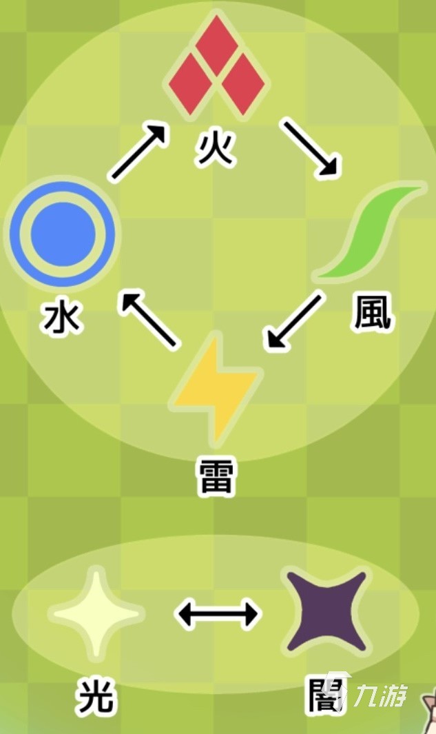 首先我們要了解世界彈射物語的屬性系統(tǒng),角色總共由風火雷水光暗六種屬性,屬性之間的克制效果是單向而且只有一個克制和被克制的屬性,克制的屬性之間有著造成傷害為1.5倍,受到傷害為50%的強烈克制關系。