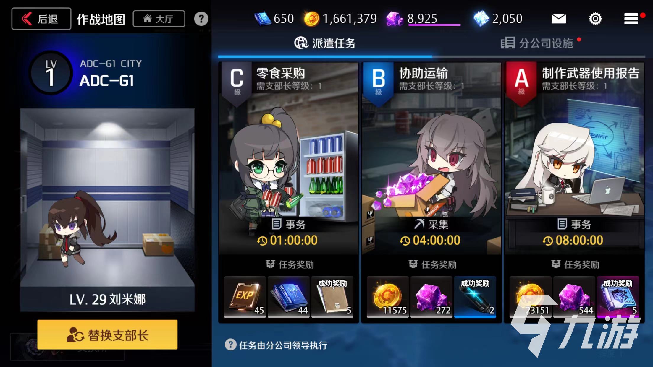 在世界地圖中,隨著公司等級(jí)越高,可以成立的分公司數(shù)量越多,可以在作戰(zhàn)地圖中進(jìn)行團(tuán)隊(duì)副本,在分工中可以執(zhí)行派遣任務(wù)并獲得獎(jiǎng)勵(lì),分公司等級(jí)越高,可以獲得的獎(jiǎng)勵(lì)越多,其中包括能晶道具獎(jiǎng)勵(lì)。