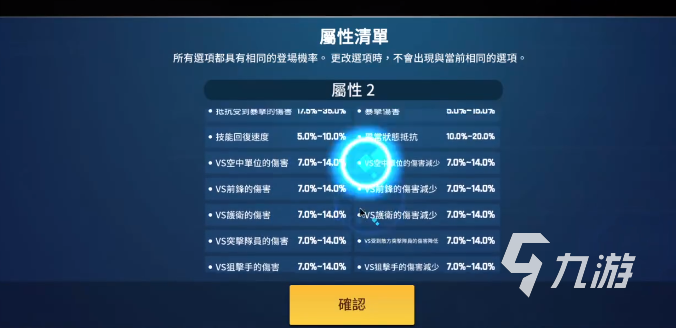 第四個(gè)推薦的是VS單位傷害減少或者說(shuō)增多,這個(gè)屬性選擇就相對(duì)較多了。如果是輸出額話(huà),同時(shí)帶有對(duì)空能力,那么就最好選擇對(duì)空單位輸出增加,可以幫助隊(duì)伍更快的解決空中單位。如果是前排的話(huà),就選擇出現(xiàn)率最多的地面單位傷害減少,可以獲得一定的傷害減免能力,獲得生存的提升。