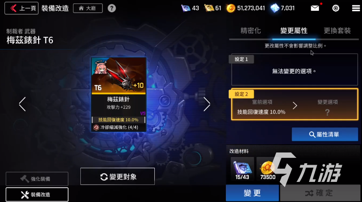 變更屬性的操作是在裝備操作界面中進(jìn)行,直接選擇變更屬性之后進(jìn)行變更操作就行了。這個(gè)變更的屬性是很多的,所以說(shuō)在選擇的時(shí)候也是要注意的。本次推薦的都是一些戰(zhàn)斗相對(duì)重要的,大家可以參考看看。