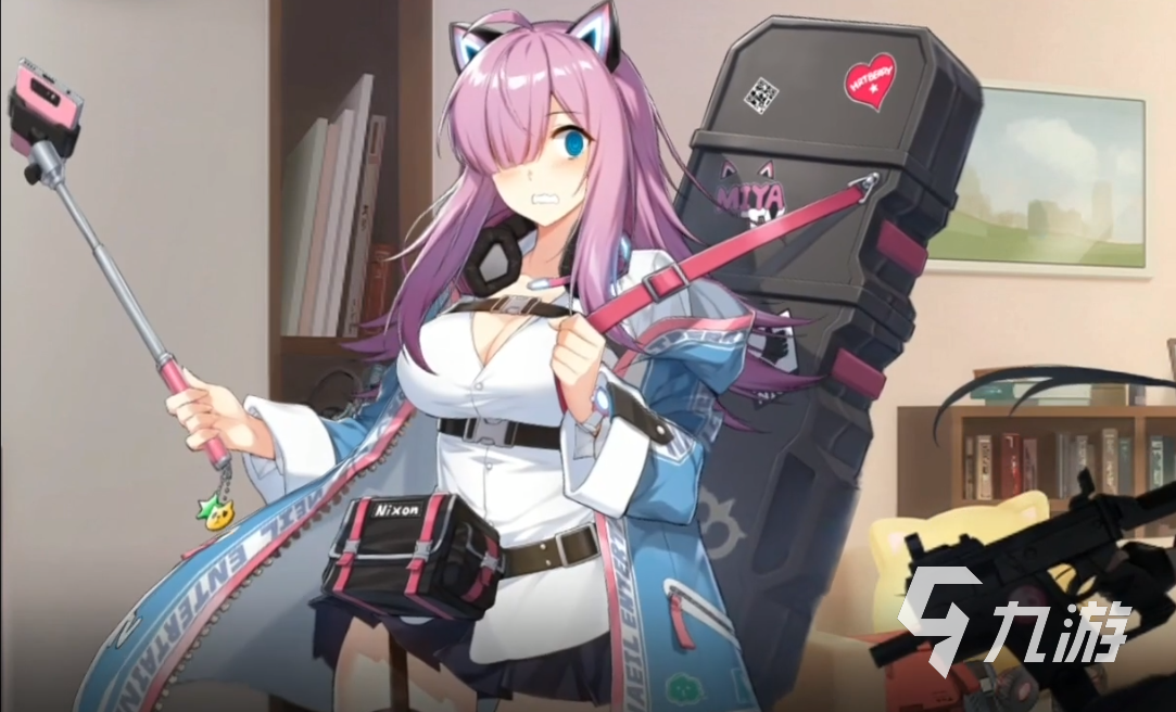 (1)角色外形:米婭在游戲中的形象是一個(gè)妥妥的萌妹子,頭發(fā)遮住一只眼睛,神情呆萌,手上還拿著一個(gè)自拍桿對(duì)準(zhǔn)自己。背后背著一個(gè)黑色的大箱子,估計(jì)誰(shuí)也想不到那里面裝的是狙擊槍。