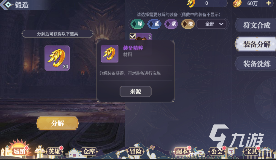 第二個要求就是消耗的要求,和大多游戲不同的是,洗練不是說只消耗金幣就可以進行的操作。除了金幣這個基礎的消耗之外,玩家還要準備好裝備精粹這個材料,每次洗練都是要消耗很多的。而裝備精粹除了一些活動玩法獲取之外,還可以通過裝備的分解來獲得,這個在選項里面是可以看到的。不同品級的裝備分解之后獲取的精粹量是不同的,大家要了解。