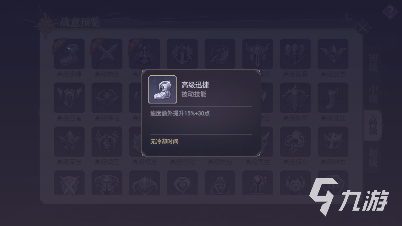 首先大家要知道的是,戰(zhàn)意技能在游戲中也是有幾個(gè)等級(jí)設(shè)定的,分別是初級(jí)、中級(jí)、高級(jí)和超級(jí)這四個(gè)。而在這幾個(gè)等級(jí)設(shè)定中,戰(zhàn)意技能都是一樣的,所以在選擇的時(shí)候,除了要考慮戰(zhàn)意技能之外,也要盡量選擇高等級(jí)的技能,效果會(huì)好很多的。