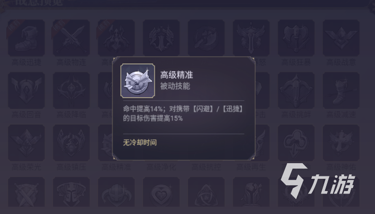 第三個(gè)推薦的是高級(jí)精準(zhǔn),這個(gè)就是帶來(lái)命中率提升的,可以獲得百分比的命中率提升。在攜帶該技能的同時(shí),對(duì)于攜帶二樓閃避或者說(shuō)迅捷的敵人會(huì)帶來(lái)百分比的傷害提升,這個(gè)傷害提升是一直都有的,非常不錯(cuò)。