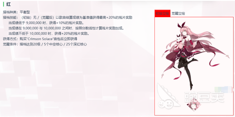 所以紅相當(dāng)于目前是唯一一個(gè)有后期此類覺醒技能的角色,而且她本身后期也可以通過不同的技術(shù)等級(jí)來得到不同的故事、劇情和背景游戲當(dāng)中的紅,她的表現(xiàn)其實(shí)跟玩家得分的數(shù)值是息息相關(guān)的,所以大家如果想要用到她的優(yōu)勢(shì),這里可以通過得分來用好她的技能,后期她在游戲當(dāng)中其實(shí)能夠帶來聯(lián)動(dòng)搭檔的角色也比較多,比如說光/對(duì)立這些角色都是她的原創(chuàng)搭檔,可以進(jìn)行一起使用的效果后期也可以觸發(fā),而聯(lián)動(dòng)搭檔里面也有薩菲亞、星這類角色,可以跟她進(jìn)行聯(lián)動(dòng)合作。