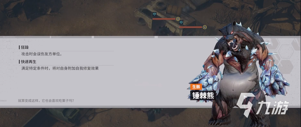 先來了解一下錘棘熊的一些基本設(shè)定,這個敵人有兩個機(jī)制。第一個機(jī)制是狂暴,狂暴的話會帶來攻擊力的提升,但是在部分情況下是會誤傷友軍的。這個機(jī)制利用好的話,可以帶來不錯的優(yōu)勢。第二個機(jī)制是再生,在滿足條件的情況下會自我修復(fù),也就是恢復(fù)血量。這個條件簡單來說就是一個回合沒有受到傷害,或者說在當(dāng)前回合擊殺某個單位就可以觸發(fā)。
