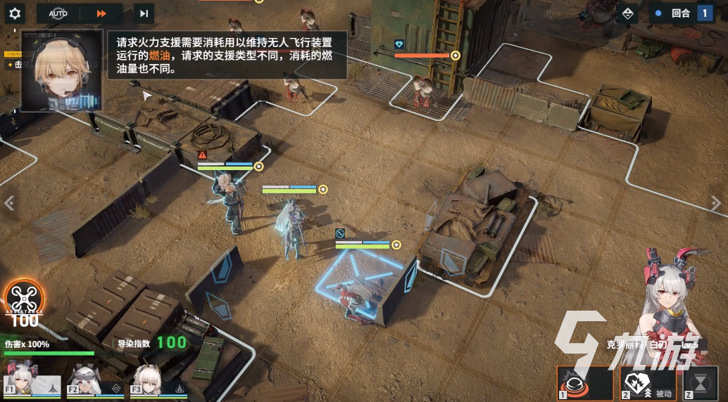 第二種就是戰(zhàn)術支援炮塔,這個支援會消耗六十點的燃油,消耗是很大的。攻擊方式為投擲一個炮塔來進行支援,這個炮塔是戰(zhàn)斗單位,雖然說不可以移動,但是輸出和射程是很遠的。