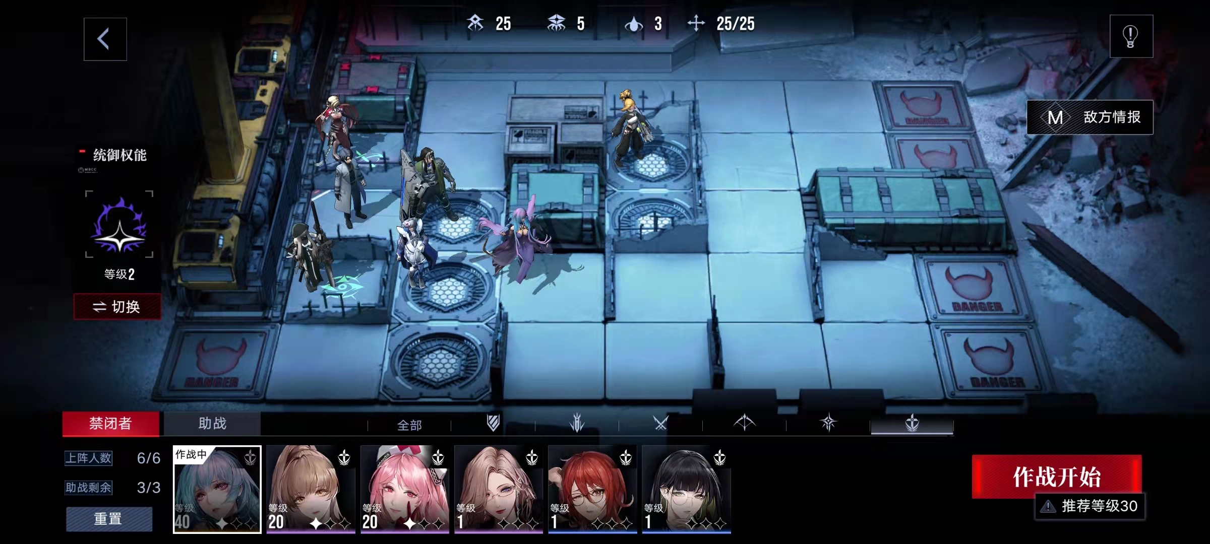 以上是小編的站位和禁閉者選取,諾克斯技能開啟后可以造成群體傷害,方便清兵,減少敵人堆積,艾米潘是有遠(yuǎn)程攻擊能力而且技能還能破除核心的精準(zhǔn)系禁閉者,哈蒙能阻擋2名敵人,伊琳娜補(bǔ)充輸出,如果沒有這些禁閉者也可以參思路換成自己有的。