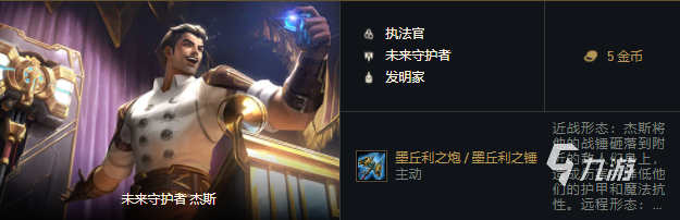 杰斯的在S6是一張非常靈活的卡,未來(lái)守護(hù)者的羈絆讓他可以當(dāng)前排也可以當(dāng)后排,所以玩家可以跟據(jù)自己的陣容來(lái)選擇杰斯放什么位置。但是杰斯的上場(chǎng)率并不高,一般只在發(fā)明體系或者執(zhí)法關(guān)英雄中。